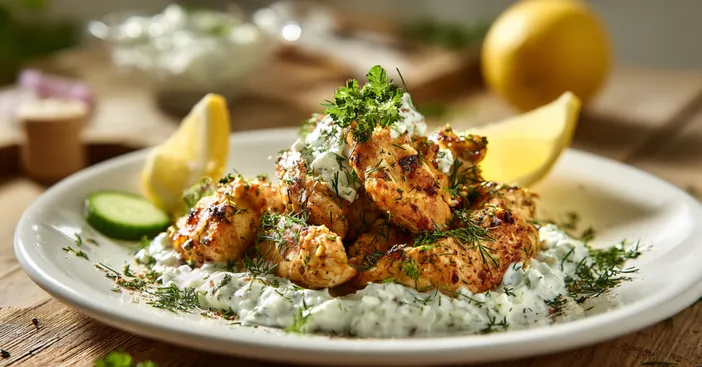 Découvrez ce Poulet Grec avec Tzatziki, une alliance parfaite de douceur, de fraîcheur et de légèreté. Grâce à une marinade au yaourt et aux herbes, le poulet devient tendre et parfumé, tandis que la sauce tzatziki apporte une touche fraîche et crémeuse. Idéal pour vos dîners estivaux, cette recette se prépare sans chichi et transforme un repas simple en moment convivial. Parfait pour vos tableaux “Summer Cooking” ou “Greek Recipes” et pour séduire les papilles de vos abonnés Pinterest.